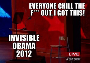 In fact, the week’s biggest winner may be Clint Eastwood’s stage partner, Invisible Obama. Since last night, Invisible Obama has a Twitter account and series of online memes.